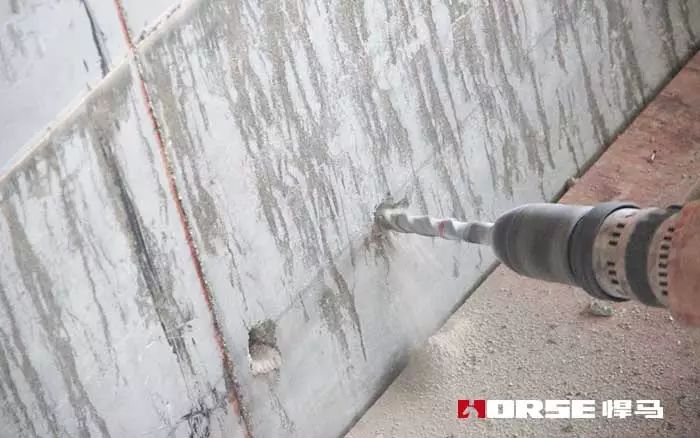 2.钻孔后应立即清理,用刷子刷除孔壁灰粉,并用压缩空气吹净钻孔内的灰粉,用木塞或纸板临时封堵孔口,以防尘土等杂物落入,影响孔壁与结构胶的粘结力。